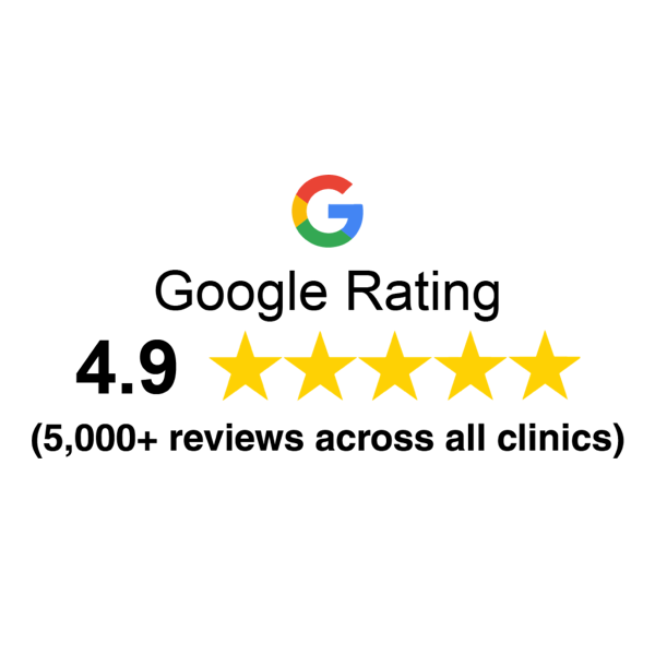 - 5,000+ Google reviews across 3 clinics and homecare. With 4.9 rating.